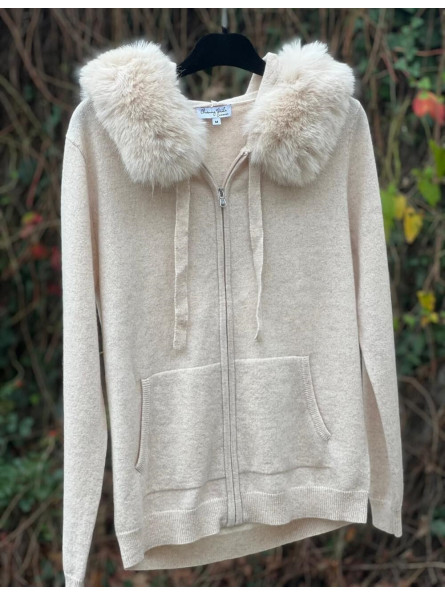 Gilet zippé à capuche en cachemire et fourrure éco Charming Smile