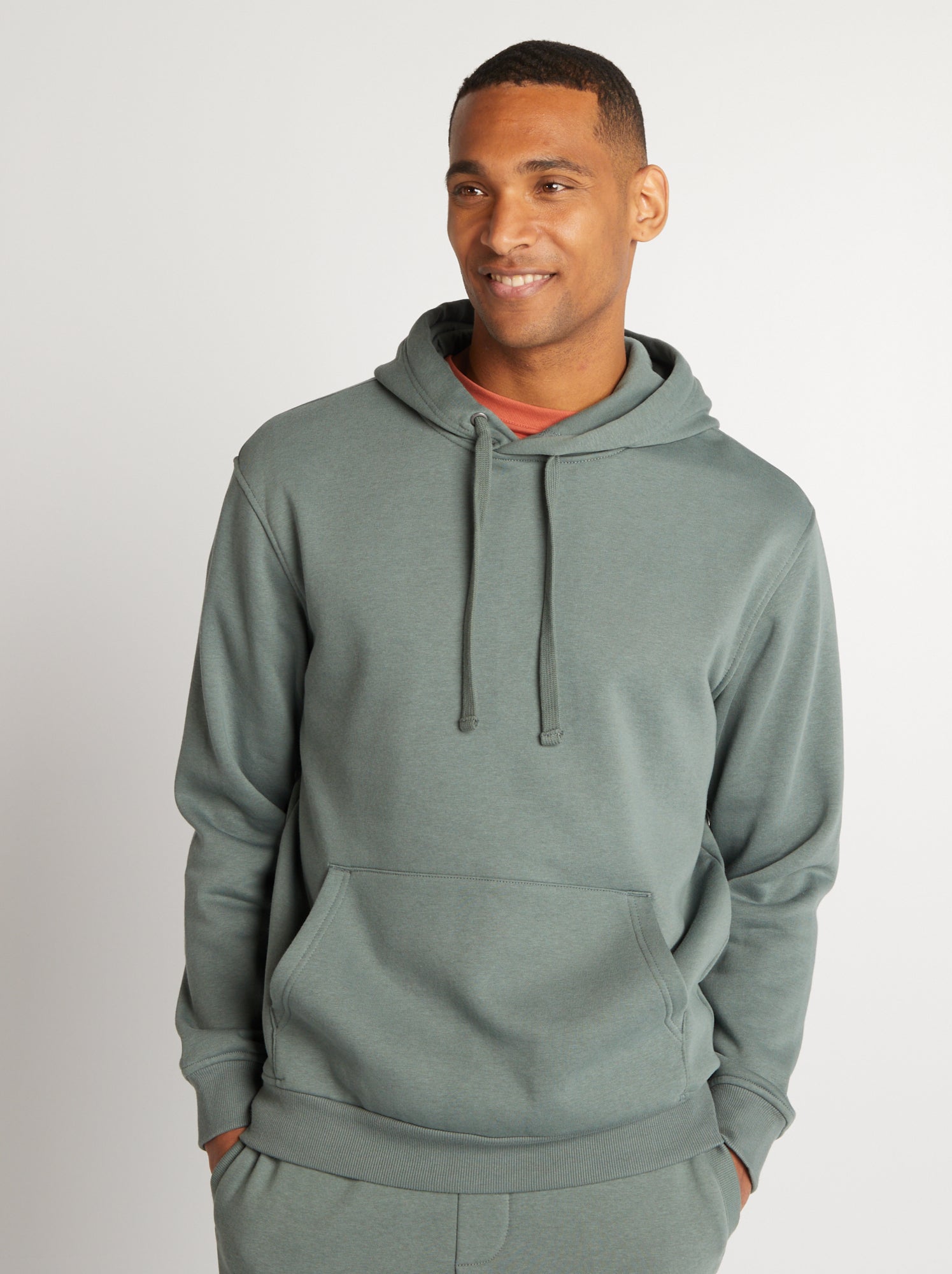Sweat à capuche uni Vert