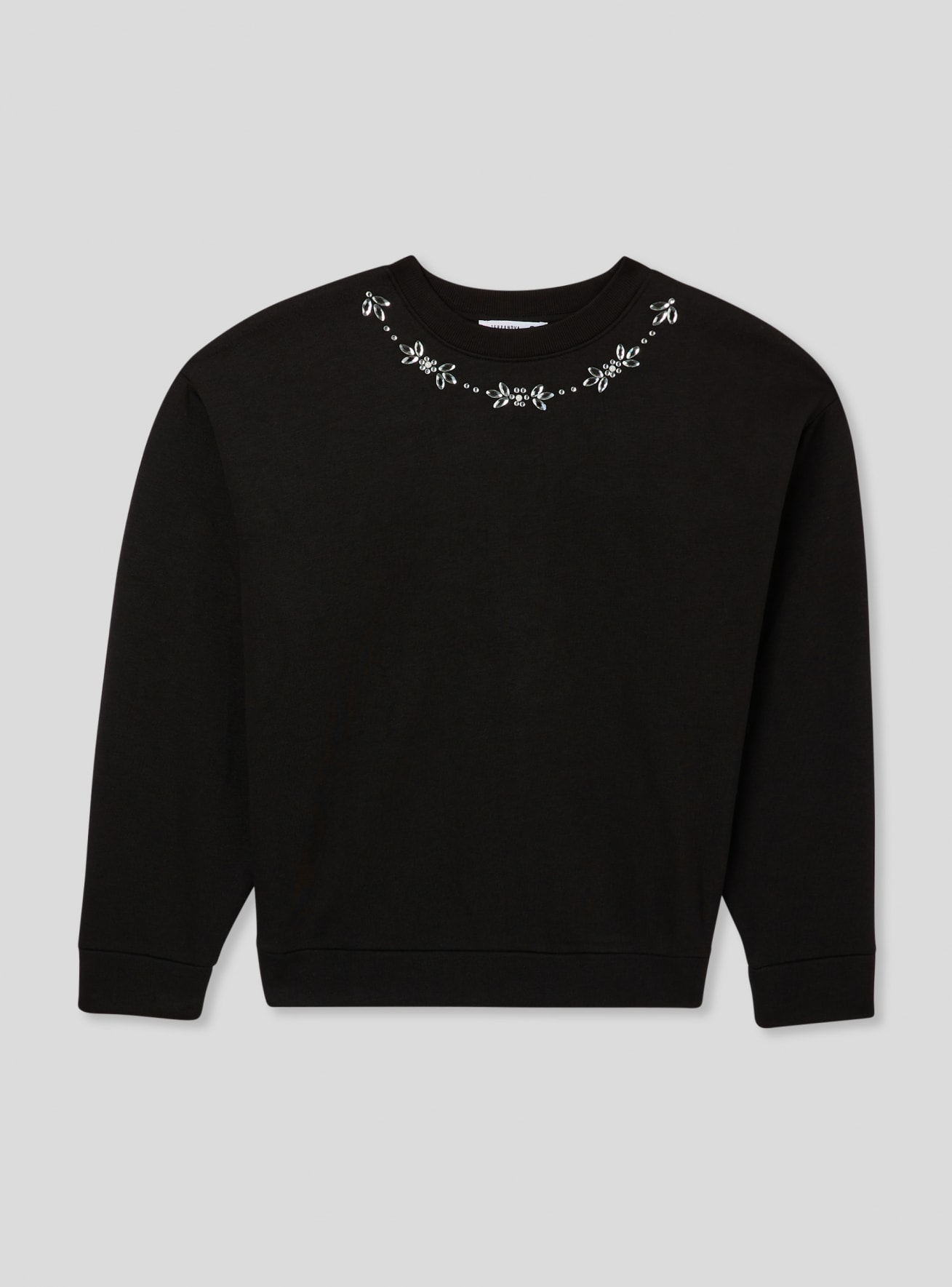 Large sweat sans capuche avec strass sur le col noir | Terranova