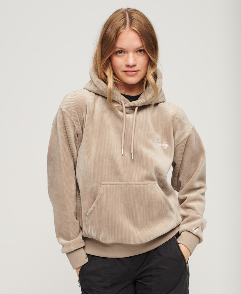 Sweat à capuche droit en velours effet maille perduegris chaud pour Femme | Superdry FR